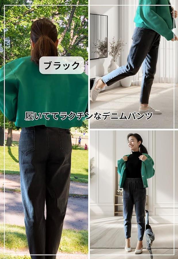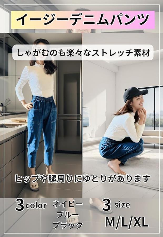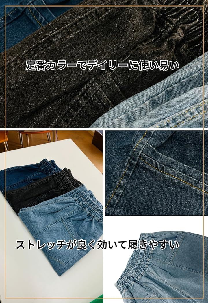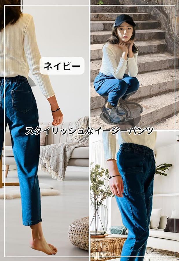 柔らかめのデニム素材でヒップ周りをゆったりとしたウエストゴムのデニムです。