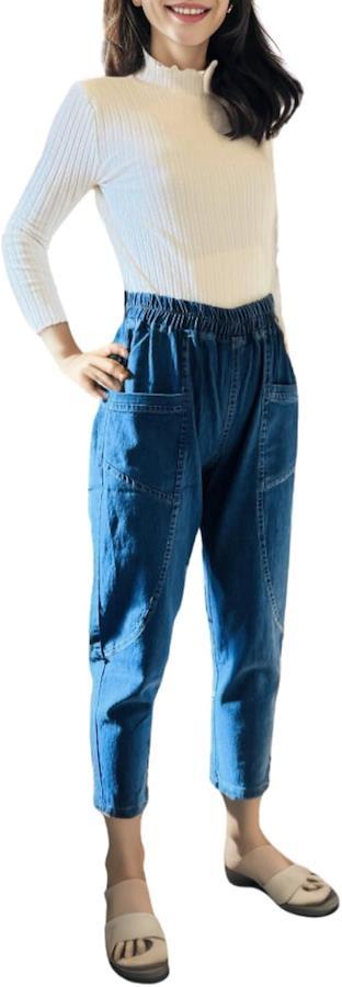 Denim Women's Easy Pants Elastic Waist Stretchy 9/4 Length Loose Stretch Jeans