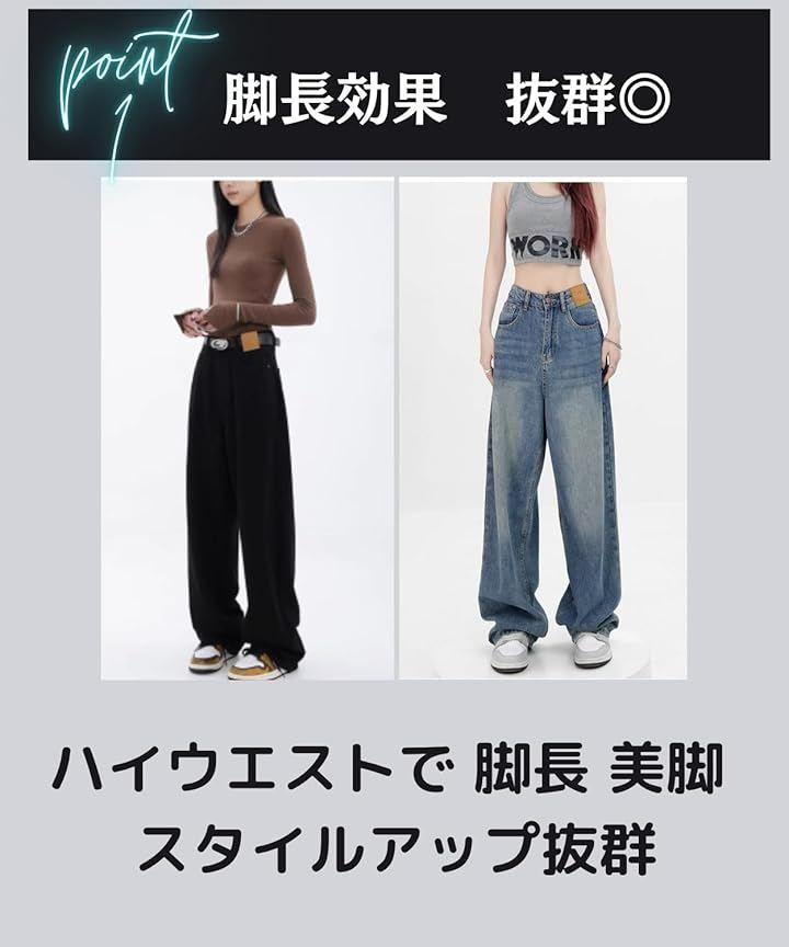 トレンド感たっぷりのバギーシルエットとハイウエストデザインが、脚を長くスタイル良く見せるだけでなく、ウエストラインをしっかりホールドしてスッキリとした印象に仕上げてくれます。