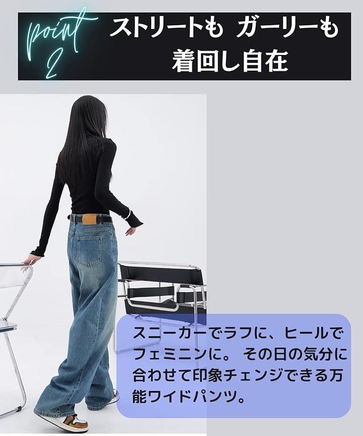 トレンド感たっぷりのバギーシルエットとハイウエストデザインが、脚を長くスタイル良く見せるだけでなく、ウエストラインをしっかりホールドしてスッキリとした印象に仕上げてくれます。
