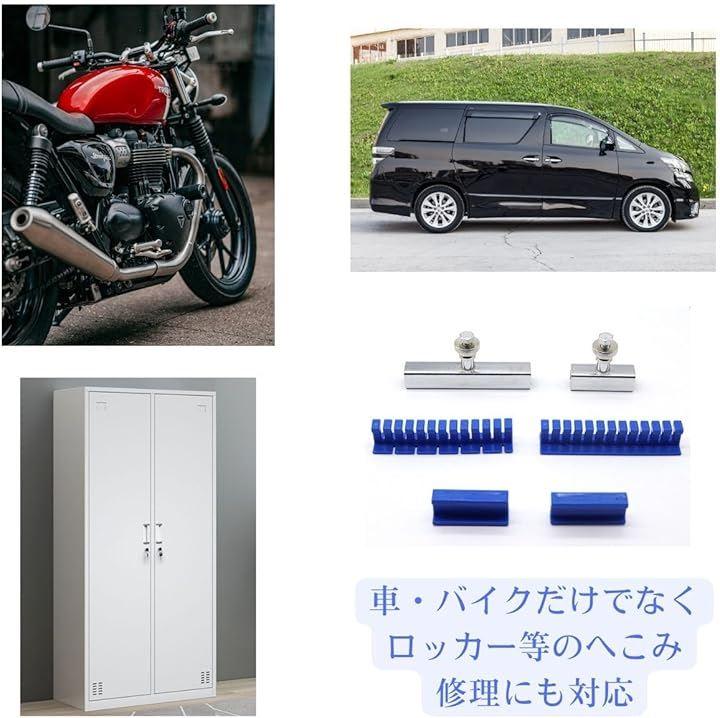 車やバイクのボディやフェンダーの修理、ドア、冷蔵庫、洗濯機などのへこみの修理が可能です。