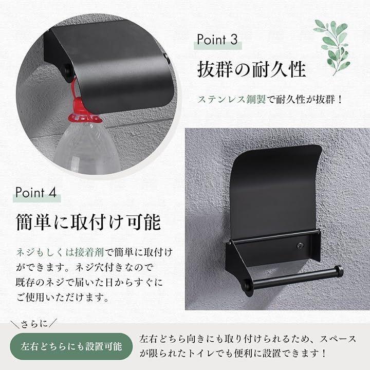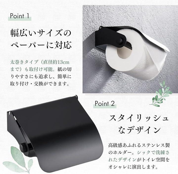 「スタイリッシュでモダンなデザイン」 高級感あふれるブラックカラーのステンレス製トイレットペーパーホルダー。
