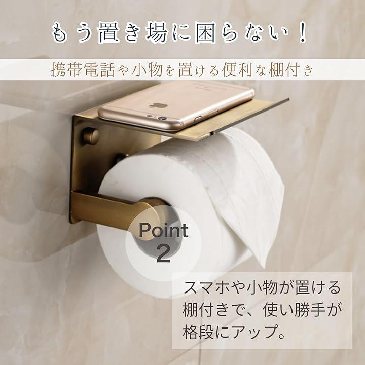 「携帯電話や小物を置ける便利な棚付き」トイレットペーパーと小物を一か所にまとめ、スペースを有効活用。