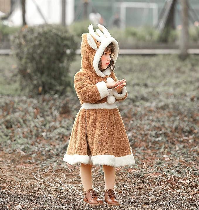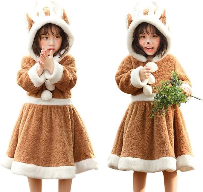 ■商品名[JUNDOMECY] トナカイ コスプレ 子供 可愛い ふわふわ 着ぐるみ 女の子 トナカイワンピ サンタ コスチューム サンタクロース 親子服 クリスマス ハロウィン イベント パーティー 新年会 文化祭 (L(135-150cm))