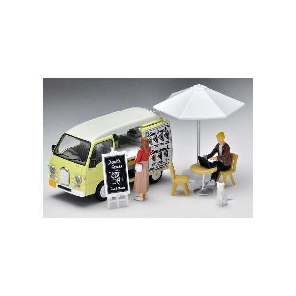トミーテック 1/64 ジオコレ64 #カースナップ15a クレープ屋(スバル サンバー ディアス クラシック 移動販売車 付属)です。近年、SNSでにわかに盛り上がっている、ミニカーやトイを使った「映え」写真。