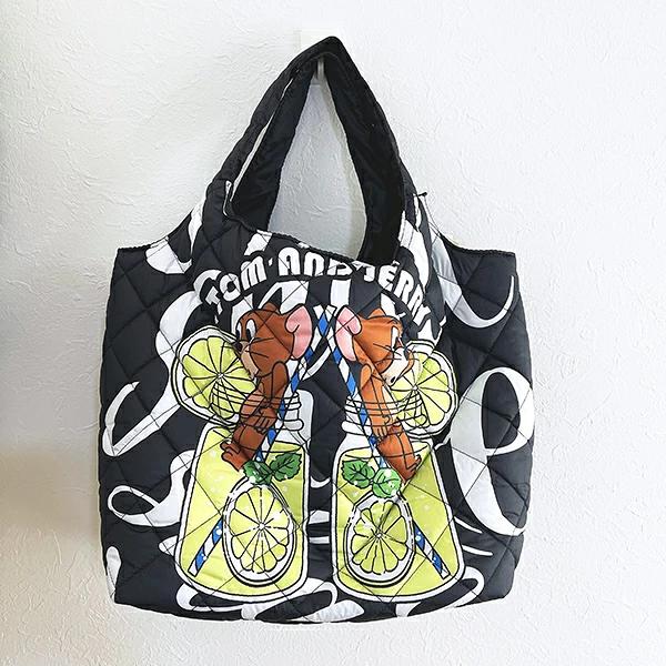 トムとジェリー(ジェリー)の中綿トートバッグです。通勤、通学、おでかけなど幅広いシーンに活躍するサイズ感が◎大容量なので荷物の多いママさんにもおすすめ♪内ポケット付きなので普段使いにもぴったり☆ふくらみのあるキルティングが秋冬のコーディネートにマッチングすること間違いなしです♪