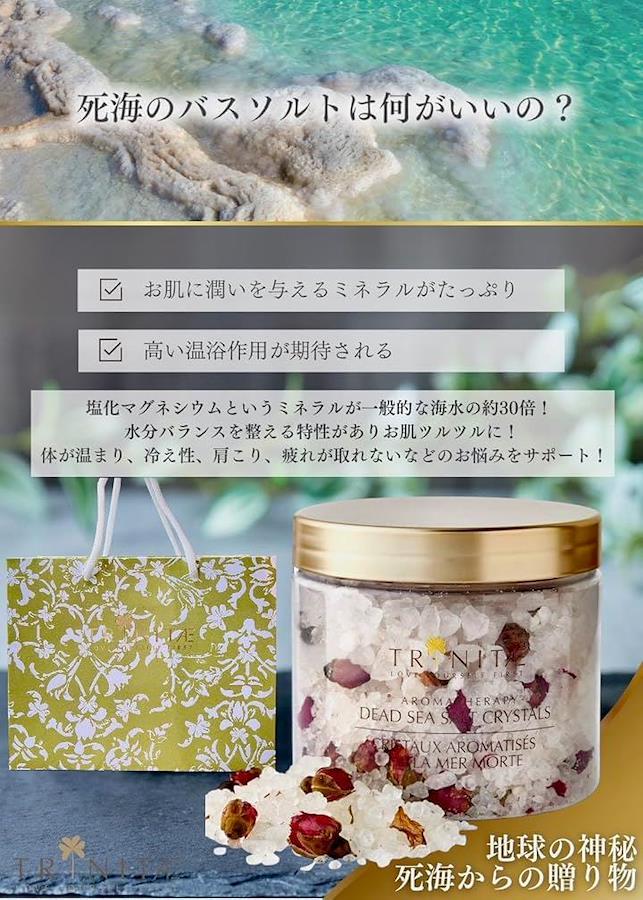 「トリネティ」アロマバスソルト(ローズ)450g/死海ミネラルハンドクリーム15ml/お渡し用ブランド紙袋付きギフトセット