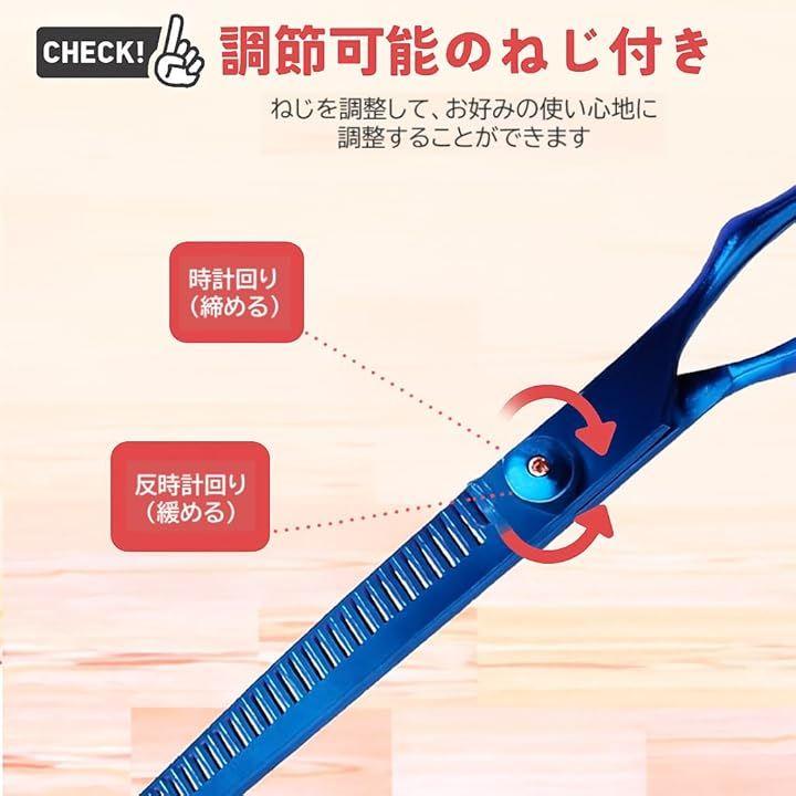 「初めてのペットカットにぴったりのセニングシザー」 ペットのカット初心者に最適なセニングシザーで、少量ずつカットできるため、失敗しにくく、自然な仕上がりを実現します。