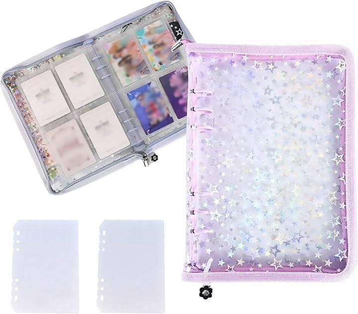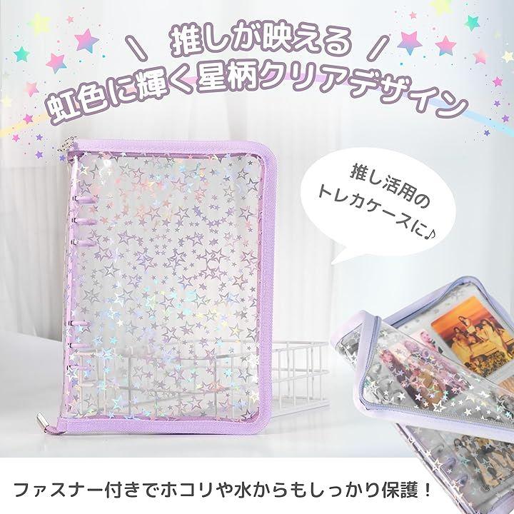 虹色に輝く星柄デザインの表紙は、推しグッズを透明カバー越しに美しく映えさせる韓国風の可愛いスタイルです。