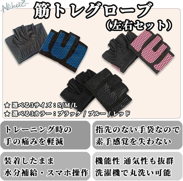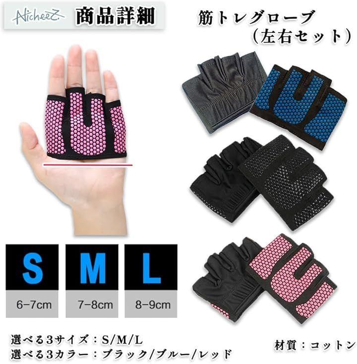 「商品内容」 筋トレグローブ(左右セット) 材質:コットン カラー:ブラック/ブルー/レッド サイズ:S/M/L