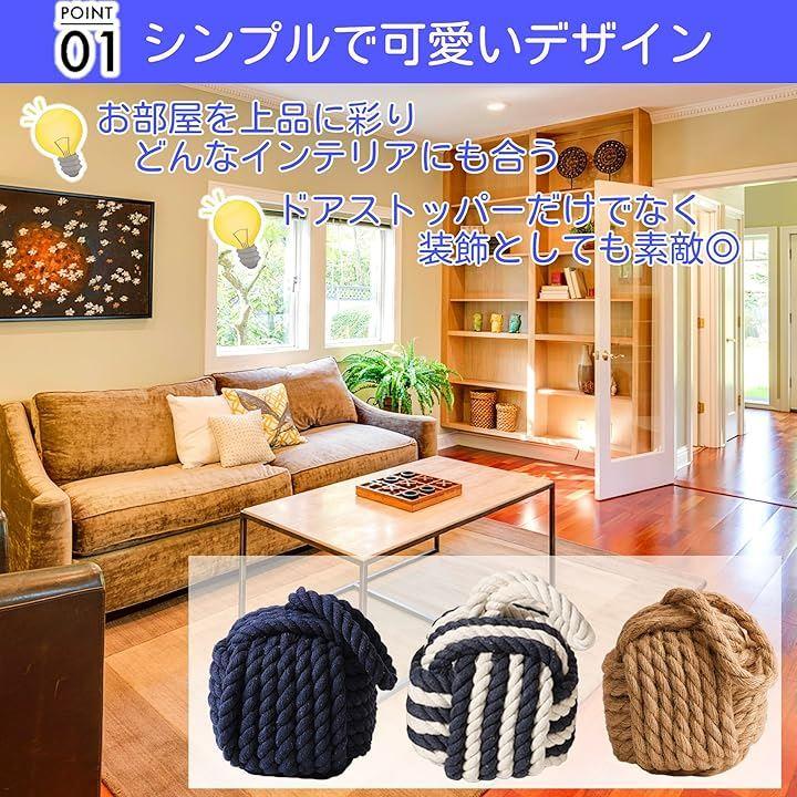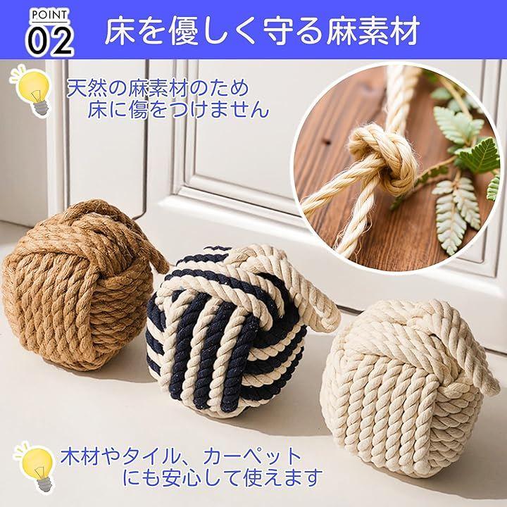 「柔らかい麻縄で床を優しく保護」天然素材の麻縄を使用しているので、ドアストッパーが床に直接触れても傷をつけることがありません。