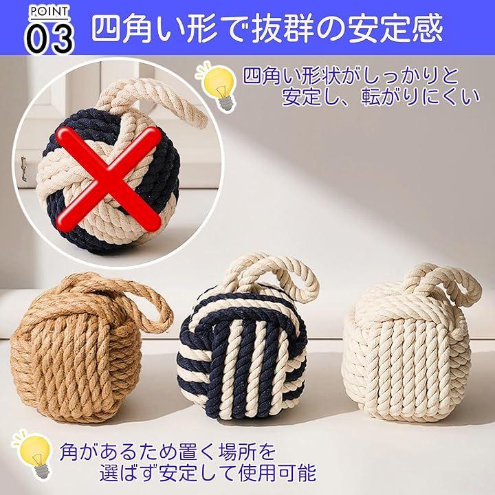 「四角い形で安定感抜群」このドアストッパーは、四角い形に編み込まれているため、丸形に比べて地面にしっかりと設置でき、安定感が高いのが特長です。