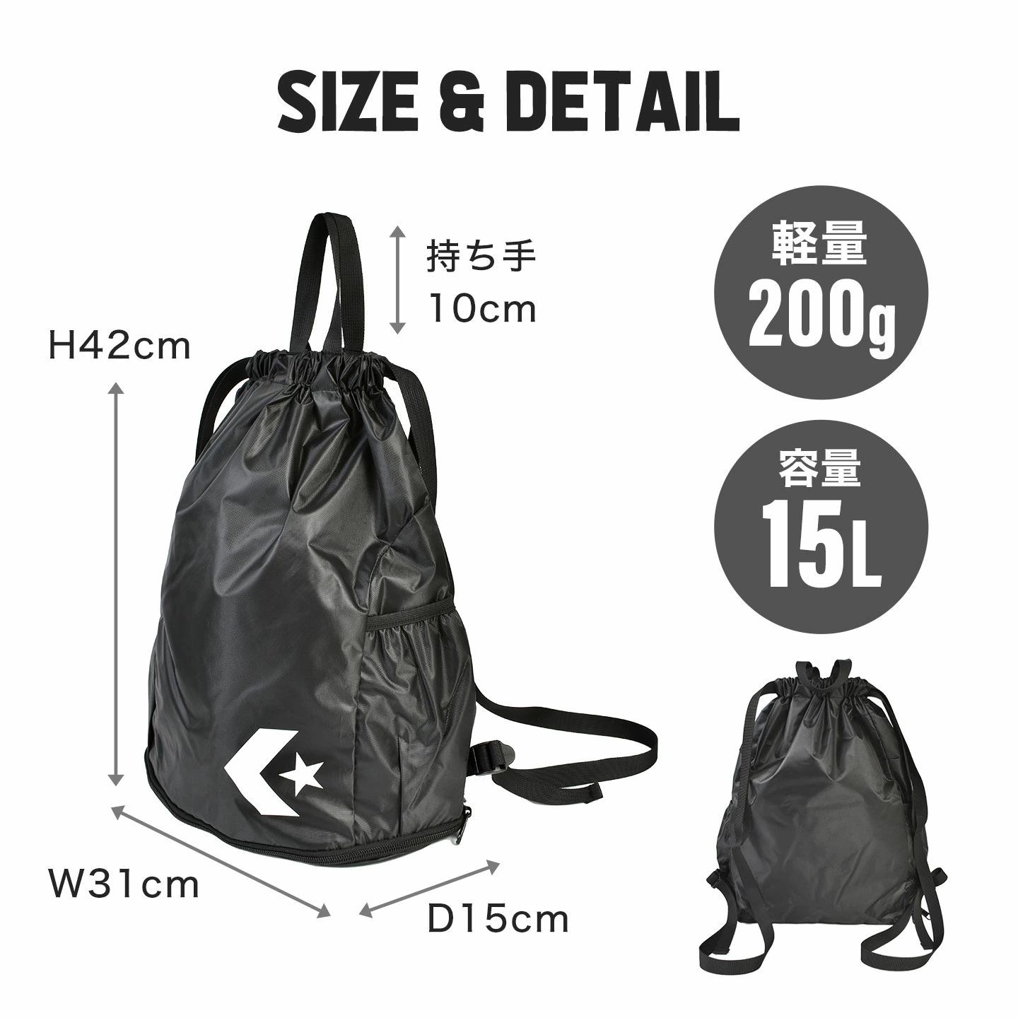 ■関連キーワードナップサック コンバース プールバッグ ジムバッグ 撥水 シューズ 収納 二層式 部活 軽量 スポーツバッグ リュック リュックサック 防水 大容量 バスケット ボール バッシュ 体操服入れ バックパック 2ルーム 二ルーム 2層式 小学生 中学生 高校生 大学生 男の子 女の子 大人 キッズ ジム 習い事 水泳 プール 海 通学 CONVERSE ナップザック 巾着バッグ ビーチバッグ 男女兼用 高耐水圧 3000mm 15L 防汚 男子 女子 おしゃれ スポーツ ブランド シューズ収納 シューズ入れ付き 水着入れ 軽い 黒 ブラック 8歳 9歳 10歳 130cm 140cm 150cm 160cm 170cm 180cm 10代 20代 30代 小学 4年 5年 6年 四年 五年 六年 生 小学校 中学校 高校 大学 高学年 学生 学校 入学 準備 入学準備 子ども 子供 こども ジュニア 息子 娘 孫 女性 ガールズ レディース girl 男性 ボーイズ メンズ boy バースデー 誕生日 プレゼント プチ ミニ ギフト クリスマス クリスマスプレゼント お洒落 シンプル かっこいい エメラルド ゴールド ホワイト 無地 ワンポイント ロゴ バッグ バック かばん 鞄 bag はっ水 はっすい ぼう水 スイムバッグ スイミングスクール サッカー フットサル ダンス バスケ クラブ 丈夫 頑丈 旅行 1泊 遠足 合宿 遠征 キャンプ アウトドア レジャー 春 夏 秋 冬 C2557023