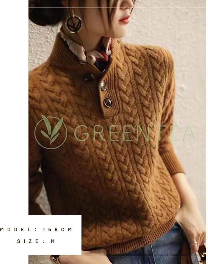 ベーシックでシンプル、着心地良いケーブル編みニットセーターです。
