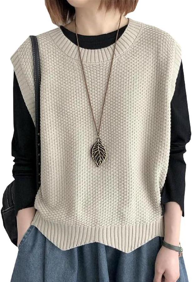 裾のギザギザデザインが可愛い薄手ニットベスト。