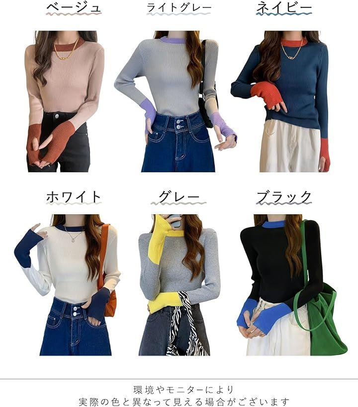 「目を惹くバイカラートップス」発色の良い切り替えデザインがぱっと目を惹く、バイカラーデザインのニットトップスの登場です。