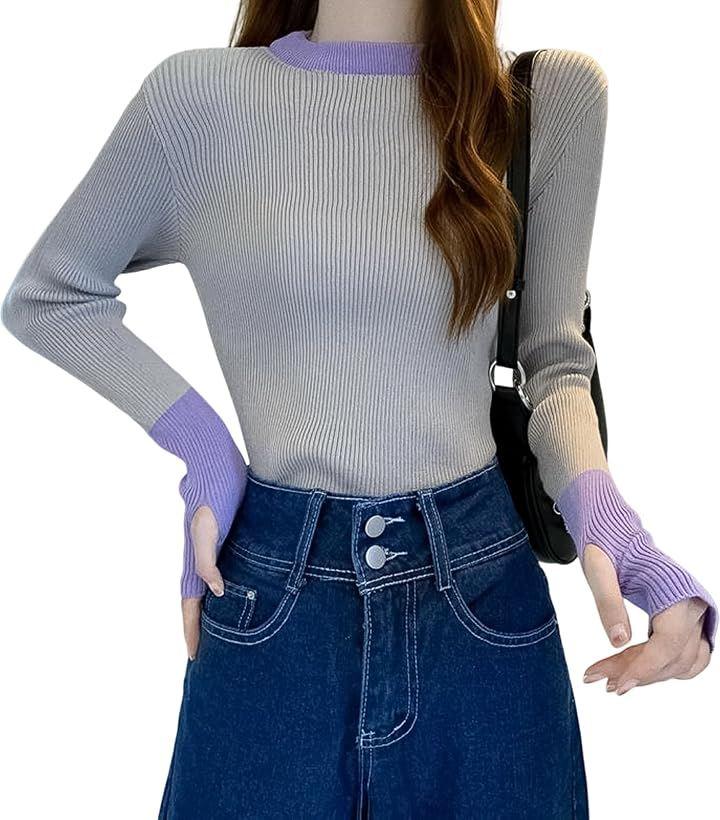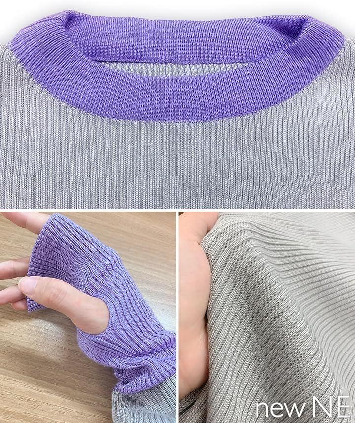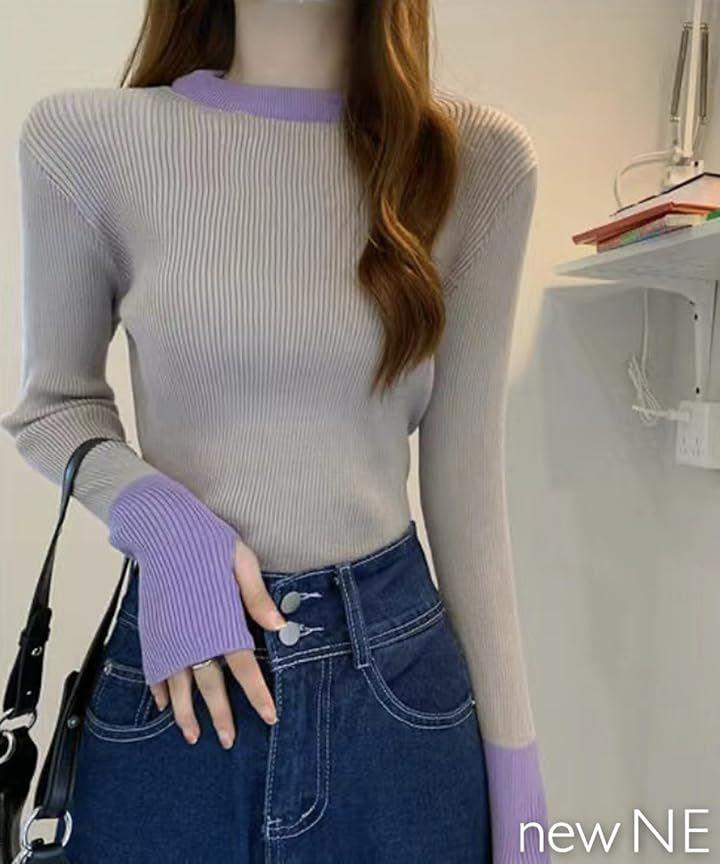 Newne Rib Knit Two-Tone Women's Long Sleeve Slimming Sweater, Perfect for Spring, Autumn, and Winter, Warm, Stylish, Cute, and Sexy