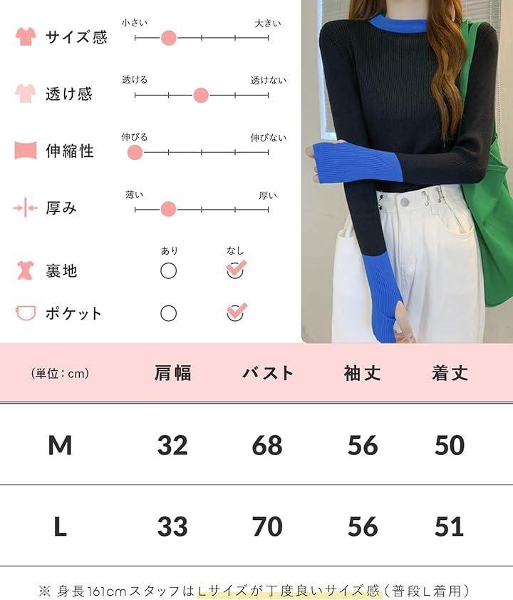 サイズ:肩幅/バスト/袖丈/着丈 「M」32/68/56/50 「L」33/70/56/51