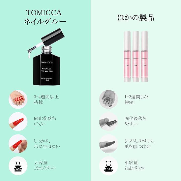 「様々なネイルアート用」TOMICCAの新しいネイルグルーは、ネイルチップ、アクリルネイル、ジェルポリッシュネイル、ポリジェルに使用でき、DIYネイルアートやサロンでの使用に最適です。