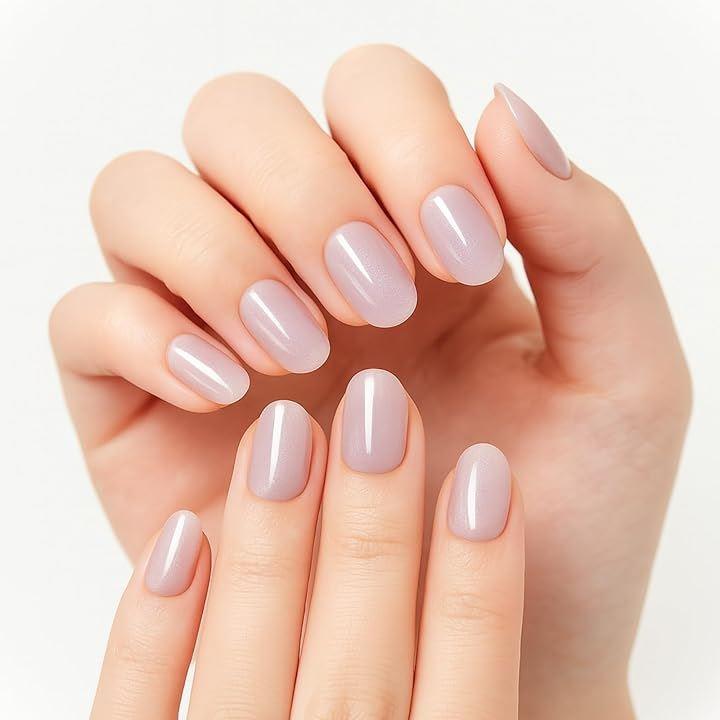 「ラベンダーグレージュ・ナチュラルショートネイルチップ」肌にふんわりなじむ、上品なラベンダーグレージュが魅力のネイルチップ。