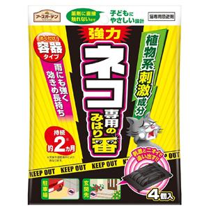 ■商品の特徴●ネコの嫌がる植物由来成分配合ワサビ由来成分、タイム由来成分、マツといった植物由来成分配合で約2か月間ネコを追す効果が持続します。●薬剤に直接触れない子どもにもやさしい設計雨に強く、効果は約2ヵ月間※持続(※使用環境により異なります。)