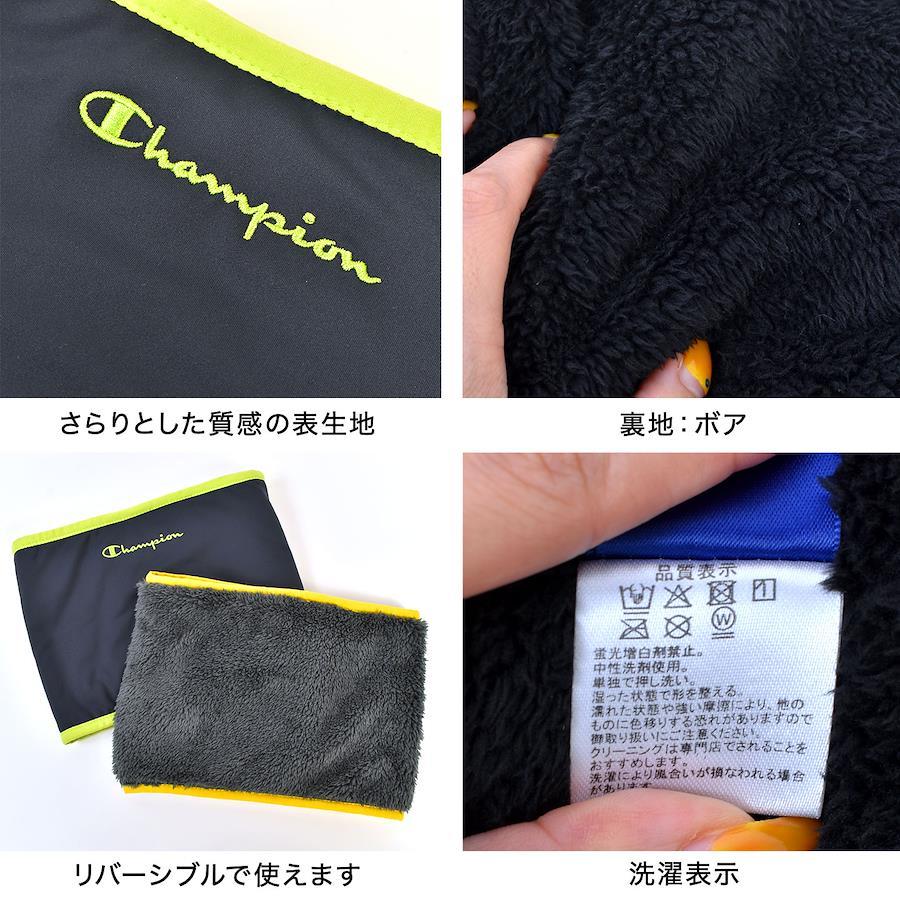 【リバーシブルネックウォーマー】バイカラーがおしゃれでリバーシブルで使えるChampion(チャンピオン)のキッズ用ネックウォーマー。内面はふわふわのボア素材で肌触り◎抗菌消臭加工付きでつけ心地の良さを保ちます。通園通学などのタウンユースはもちろん、スポーツなどのアウトドアシーンにもぴったり!幼稚園から小学校高学年まで長く使えるアイテムです。