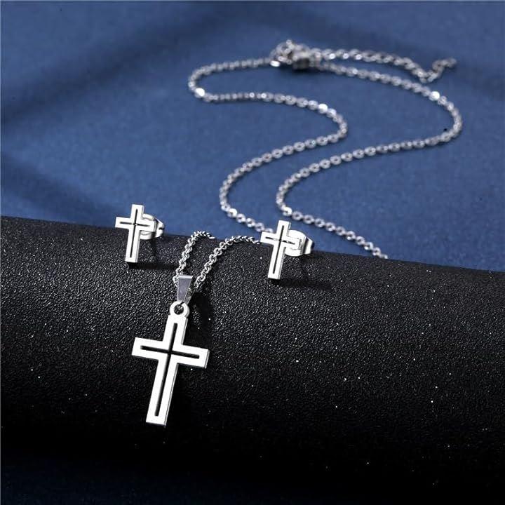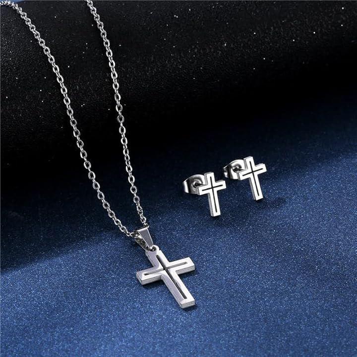 ネックレス:約44cm (+5cmの延長チェーン付き) / 十字架サイズ:1.5cm x 2cm