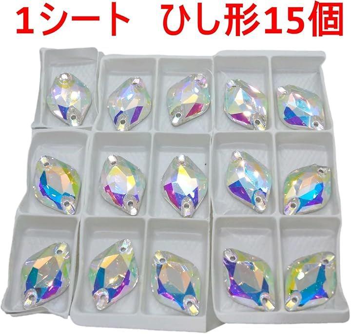 「素材」高品質クリスタルガラス(AB加工) 「仕様」縫い付け用両端穴2つ 「形状」ひし形 「販売単位」各サイズ別トレー1つで販売(トレー内の個数はサイズ別)