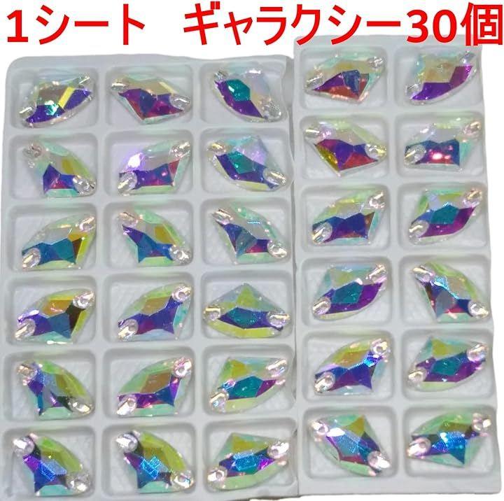 「素材」高品質クリスタルガラス(AB加工) 「仕様」縫い付け用両端穴2つ 「形状」ギャラクシー 「販売単位」各サイズ別トレー1つで販売(トレー内の個数はサイズ別)