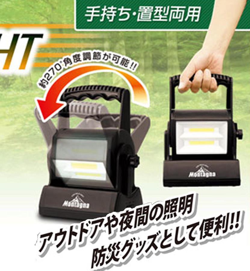 アウトドアや夜間の照明、防災グッズとして便利! ◎超高輝度COBライト仕様 ◎連続点灯時間約36時間 ◎明るさ2段階 HIGH(200lm)/LOW(100lm) ◎約270°角度料説が可能約W16×D10×H22cm