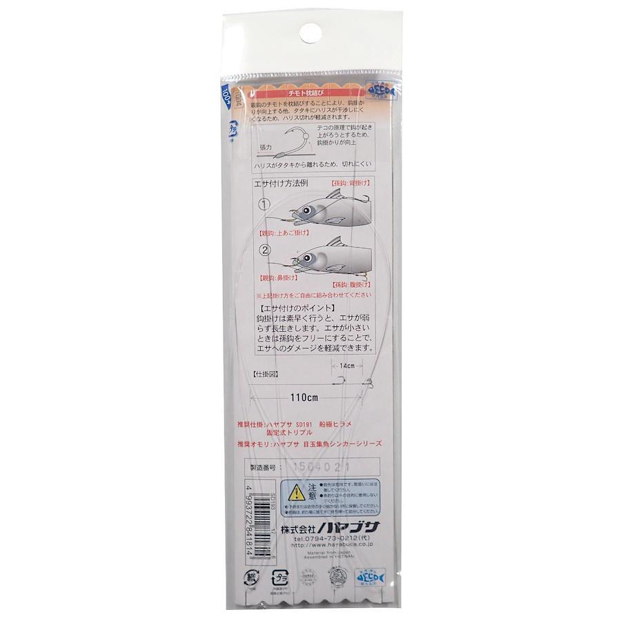 親鈎のチモトを枕結びすることにより、鈎掛かりが向上する他、タタキにハリスが干渉しにくくなるため、ハリス切れが軽減されます。