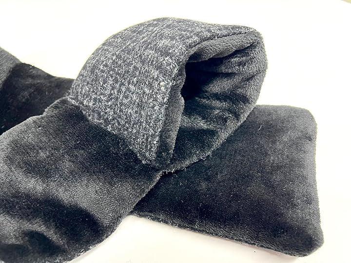 肌に触れる部分は触り心地がとても良いボア素材で保湿性、保温性に優れた中綿入りのマフラー。