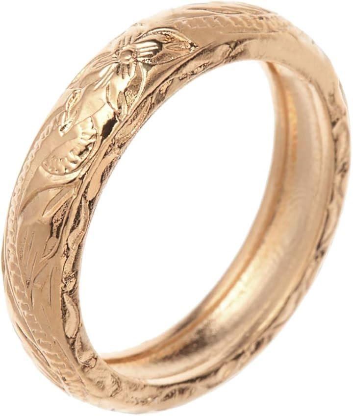 ハワイアンジュエリーのスクロール柄を甲丸の表面と側面に刻んだ