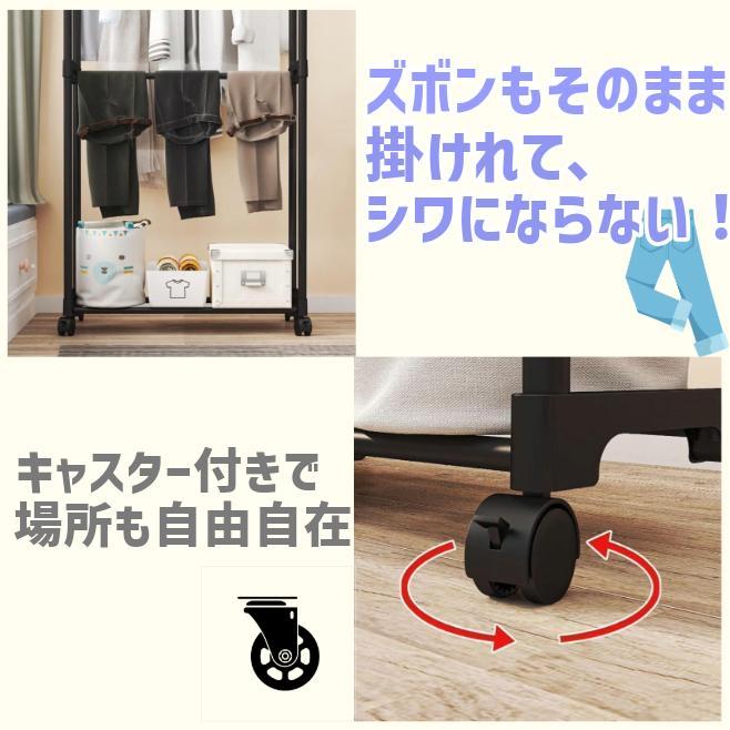| 【130cmと115cmの2段仕様】 | 『コート』『 スカート』『 ロングスカート』『 ズボン』『 長ズボン』 も掛けれる。 130cn のロング部分と、コンパクトな115cm部分の2段仕様になっており、用途によって使い分けが可能。 コンパクトな115cm部分はパンツをそのまま掛けることもできます。 よく履くパンツを掛けておけば、お出かけ時の『あれ?どこいった?』問題も解決。 |