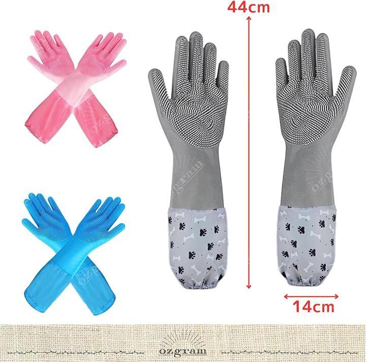 「濡れないロングスリーブ設計」 44cmの長めデザインで袖口もしっかりフィットしており脱げにくい構造です。