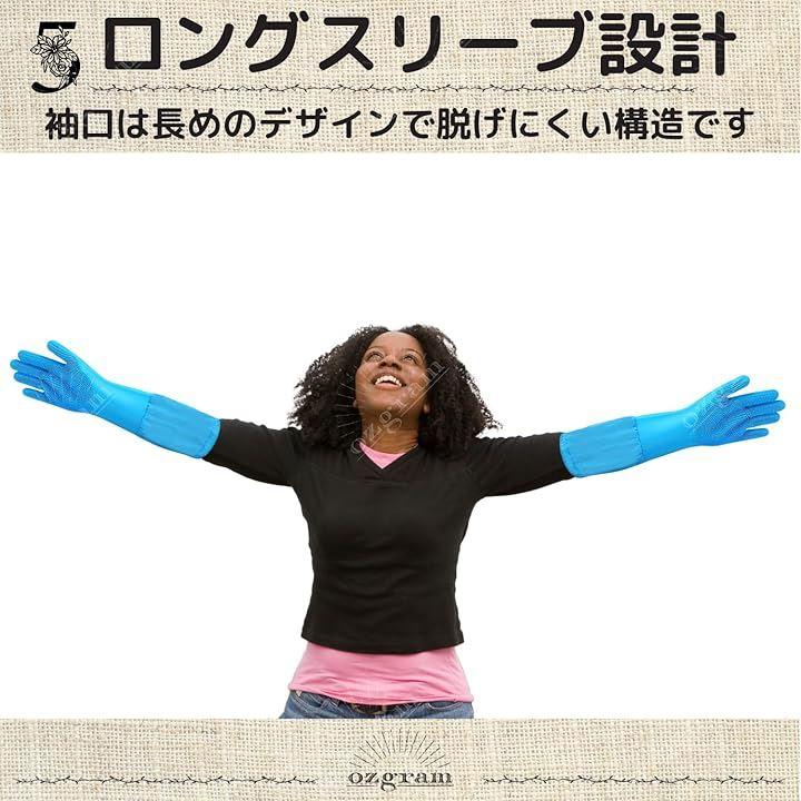 「濡れないロングスリーブ設計」 44cmの長めデザインで袖口もしっかりフィットしており脱げにくい構造です。