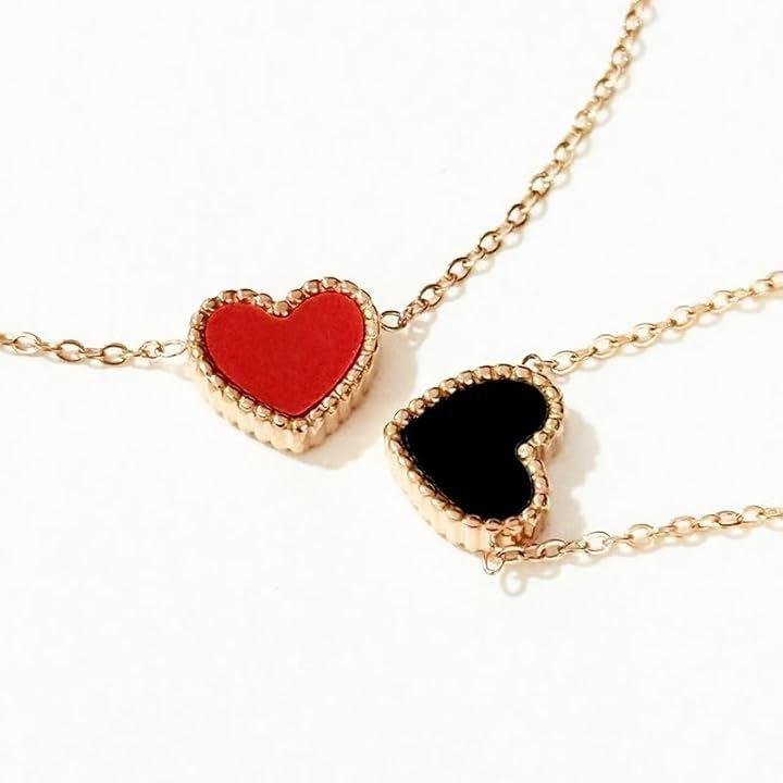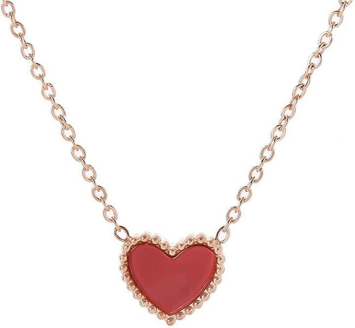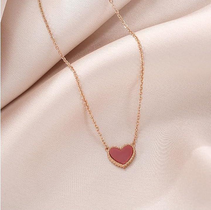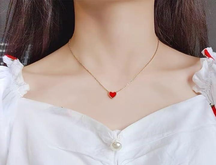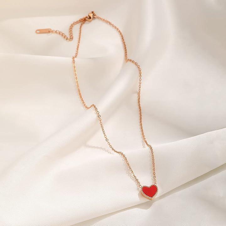 「鮮やかなレッドxピンクゴールドで“肌映え”」深みのある赤いハートを、上品なピンクゴールドのチェーンにひと粒あしらったワンポイントネックレス。