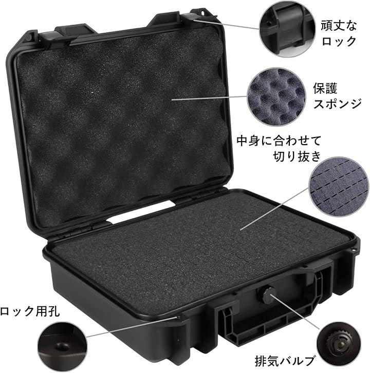 このハードケースは、防水・防塵仕様で、内部には2枚のスポンジが内蔵されており、収納物の形に合わせて簡単にDIYが可能です。