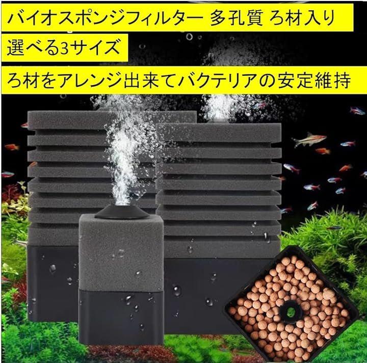 「選べる3サイズ」バイオスポンジフィルター ろ過 ろ材 スポンジ スポンジフィルター 多孔質 ろ材入り アクアリウム 水槽 熱帯魚 金魚 メダカ に ご使用ください