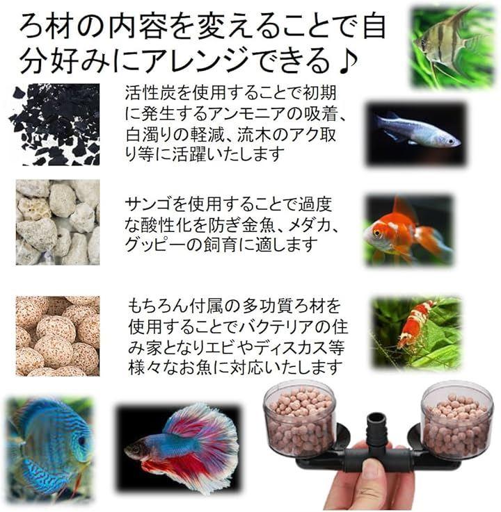 もちろん付属の多功質ろ材を使用することでバクテリアの住み家となりエビやディスカス等様々なお魚に対応いたします