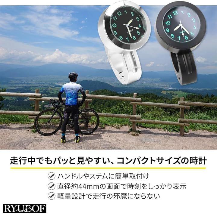 バイクや自転車のハンドルバーに手軽に装着できるアナログ時計です。
