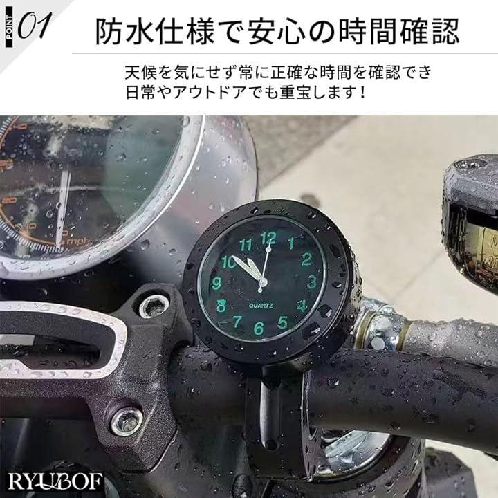 「防水仕様で安心の時間確認」 バイク用時計は防水性能を備えており、雨や湿度の高い環境、オフロードでの使用時も安心してご利用いただけます。