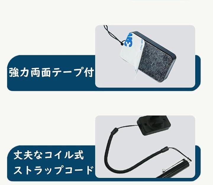 「強力な両面テープでしっかり固定」 本商品の特徴として、強力な両面テープ付きでバイクの平らな部分にタッチペンを固定し収納することができます。
