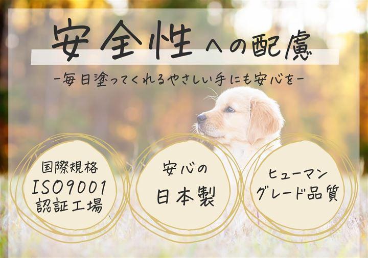 人間用と変わらない品質管理で飼い主さんの肌にも優しいクリームです。