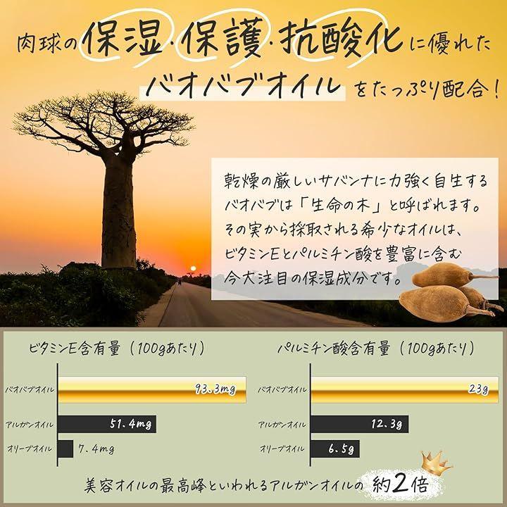 バオバブの種子の中心部からごくわずかしかとれないバオバブオイルを高配合した肉球クリームです。