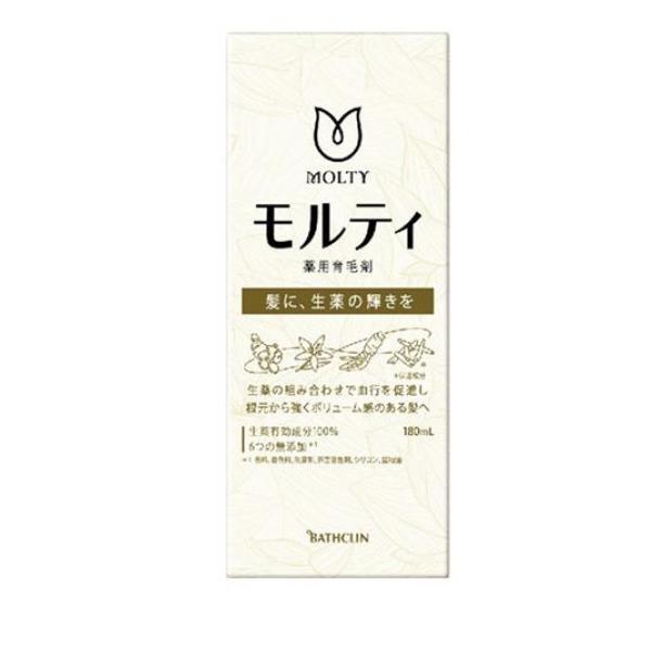 製品の特徴●バスクリン MOLTY モルティ薬用育毛剤●女性ひとりひとりの髪・頭皮悩みをサポートする育毛ケア。●根元から強くボリューム感のある髪へ。●天然由来成分だけで作った薬用育毛剤。●髪や頭皮のお悩みが増えてきたと感じる方に。●生薬有効成分の組み合わせが効果を発揮、頭皮の血行を促進、発毛を促進。●生薬有効成分:独自開発 ショウキョウ・ニンジン・センブリ●保湿成分:5つの毛髪構成アミノ酸※・独自開発 ボタンピエキス。※アルギニン、グルタミン酸、バリン、ロイシン、イソロイシン●頭皮に生薬の成分が浸透※しやすい、メーカーの独自処方。※角層まで●べたつかず、爽やかな使い心地。●6つの無添加(香料、着色料、防腐剤、界面活性剤、シリコン、鉱物油)。●頭皮と同じ弱酸性。●アレルギーテスト済み(すべての方にアレルギーが起きないというわけではありません)。●医薬部外品●販売名:モルティ育毛リキッドB-a