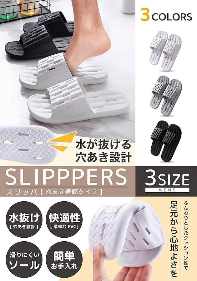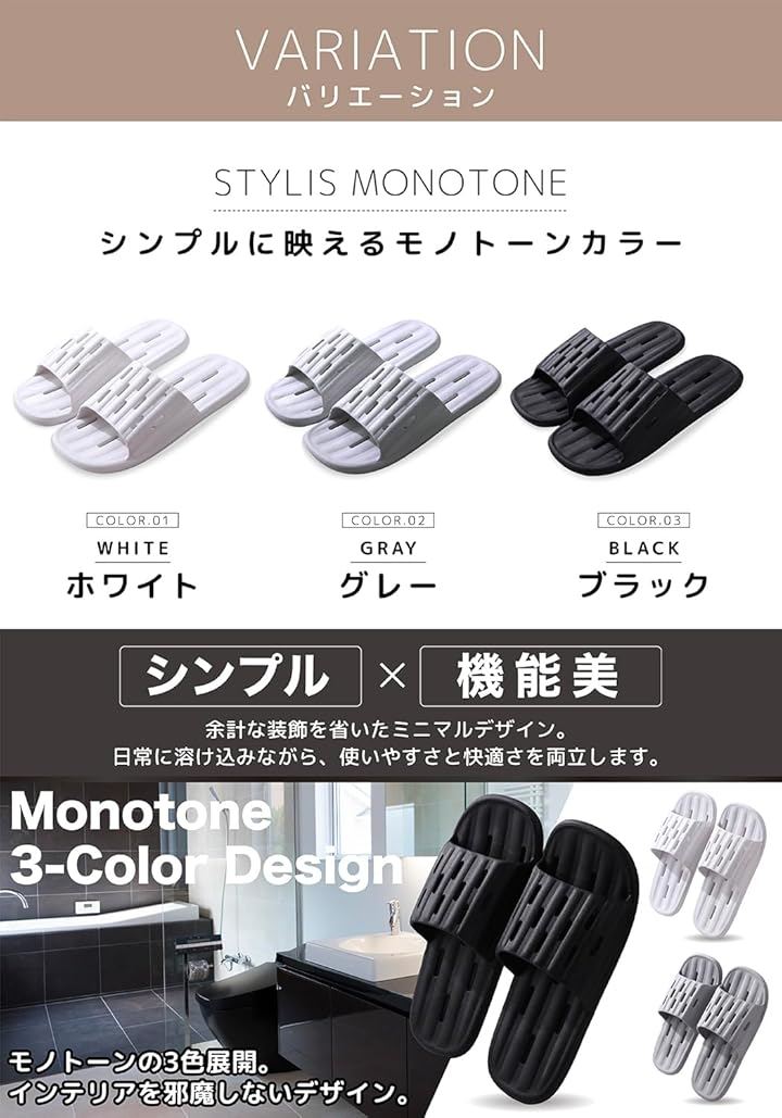 「利用シーン バスルームで」水はけの良い穴あきソール。