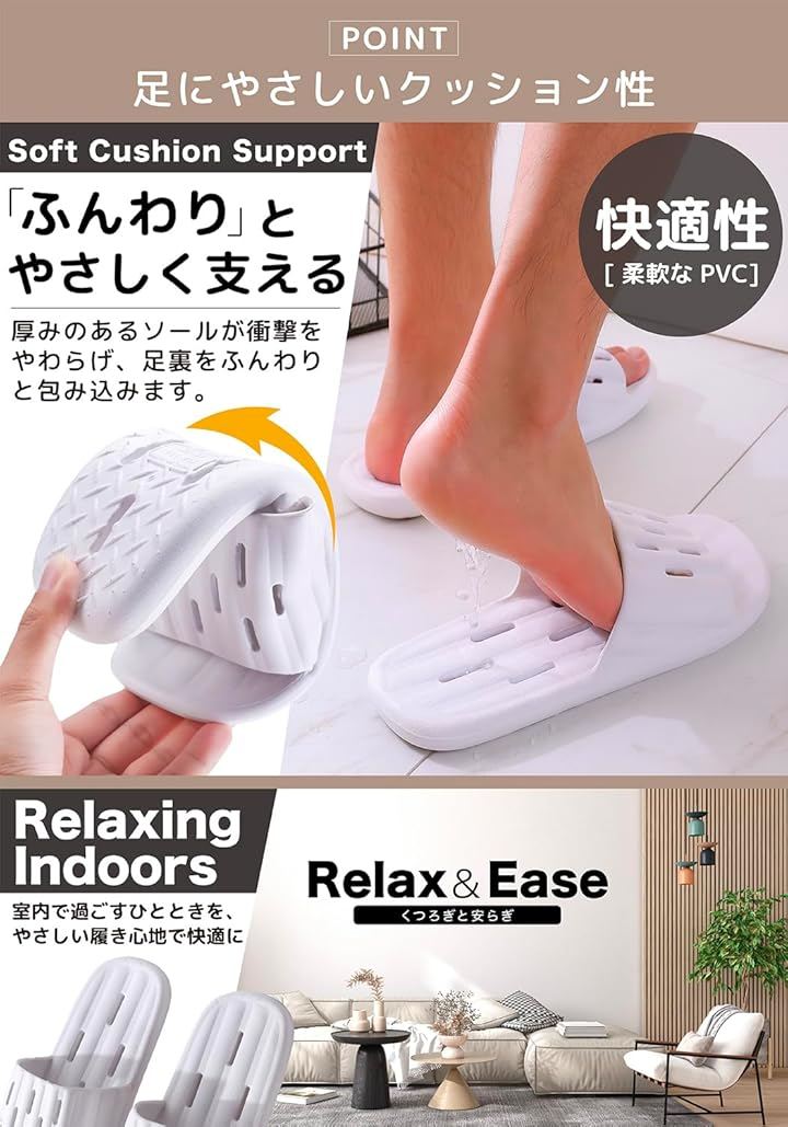 *濡れた床や滑りやすい場所(タイルの上など)では、サンダルが滑りやすくなることがあります。