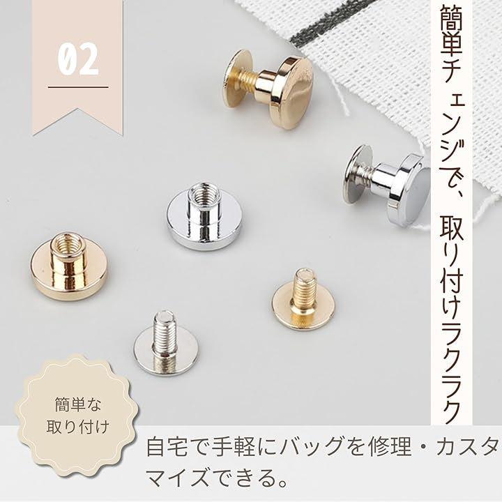 「簡単な取り付け」バッグの金具部分に持ち手を通し、付属の専用ネジをドライバーで締めるだけで取り付けが完了します。