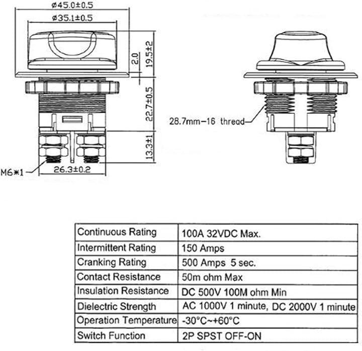 「仕様」50V DC 50A/32V DC 100A 対応のバッテリー カットオフ 切替 スイッチ です。